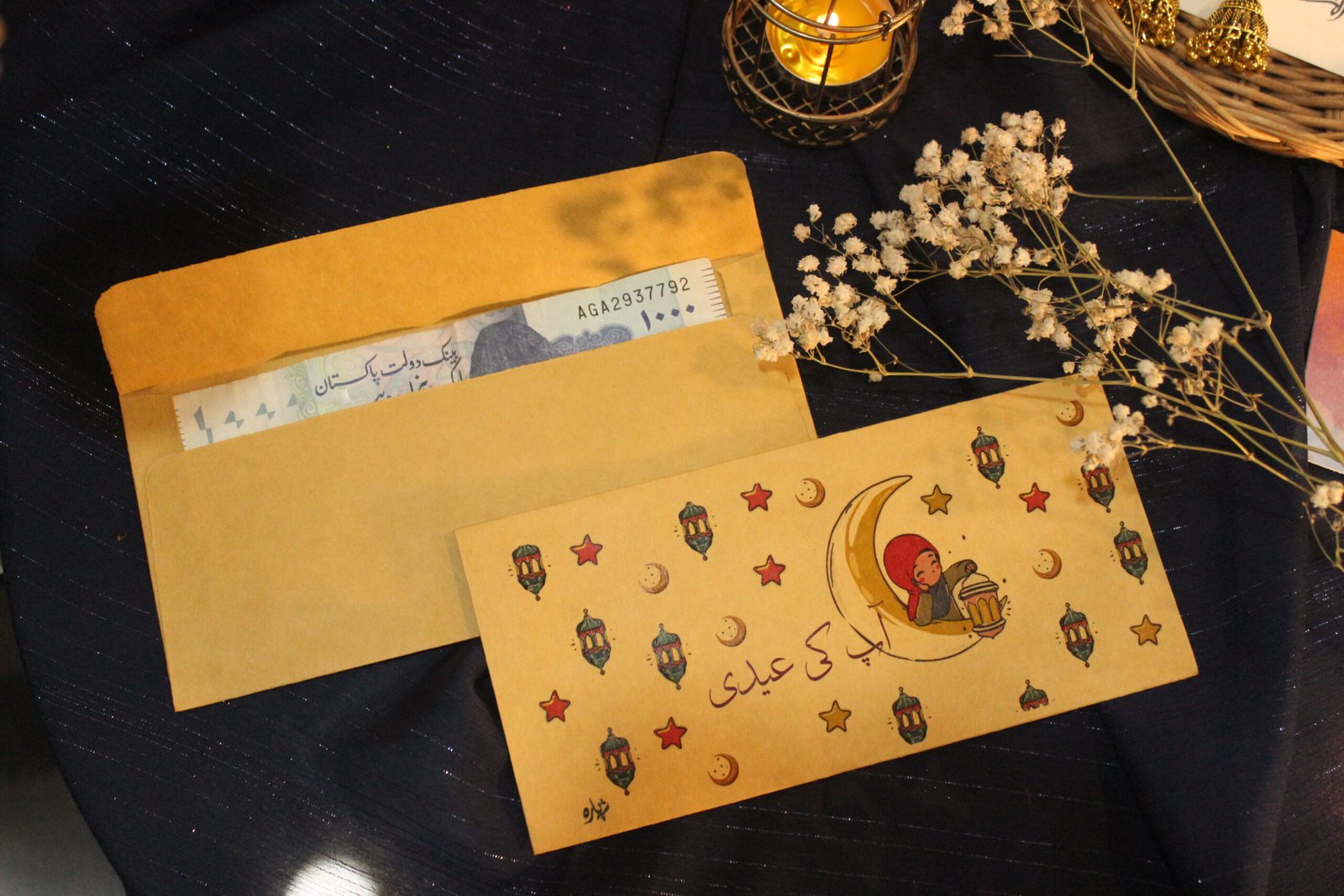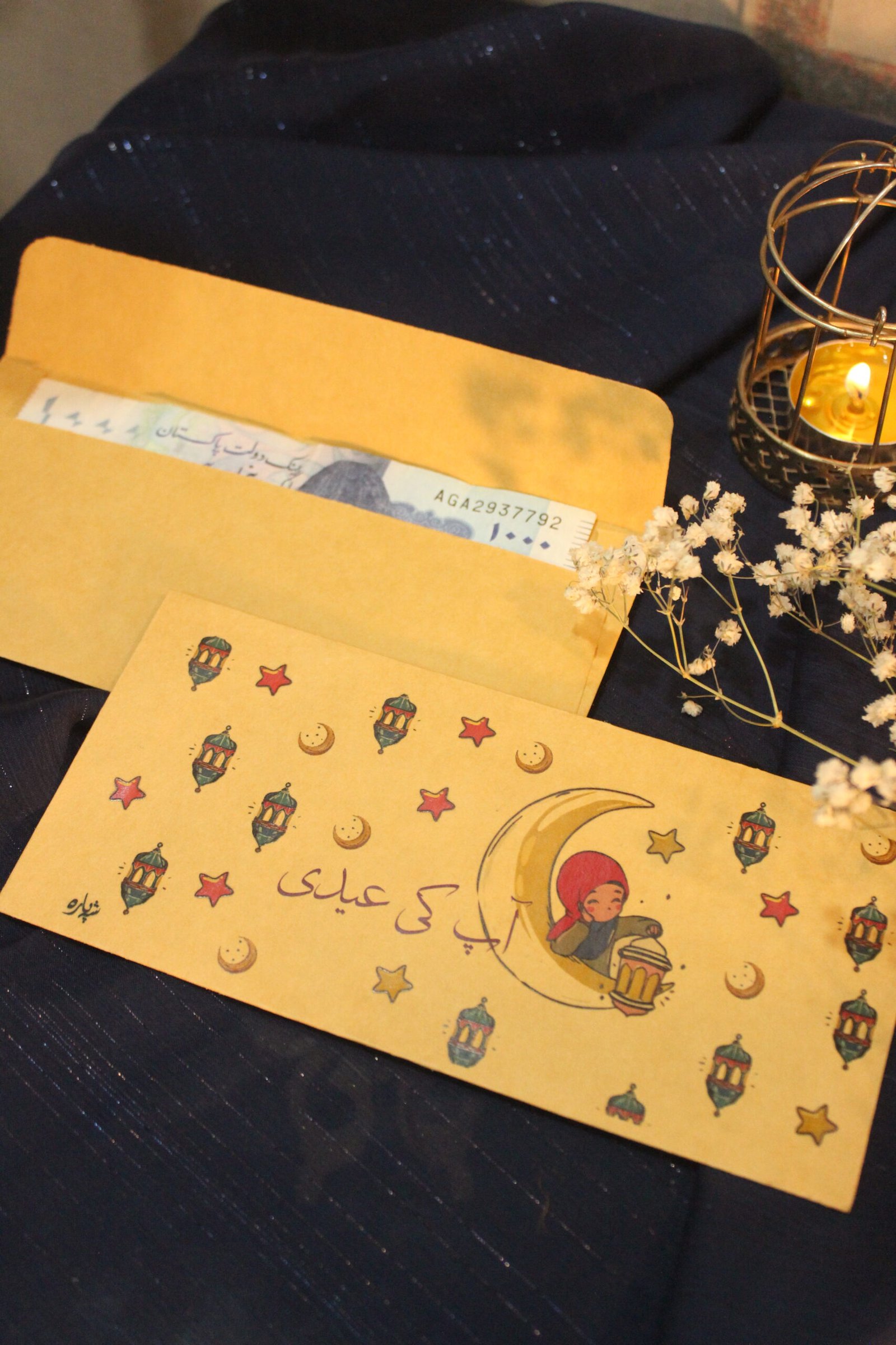 Celebrate Eid in style with our Vintage Eidi Envelope, featuring a beautifully classic yet colorful design and the heartfelt message “Ap Ki Eidi” elegantly written on it.  the title itself adds a personal and thoughtful touch, making it feel extra special for the receiver. A perfect blend of nostalgia and festivity to present your Eidi with grace!